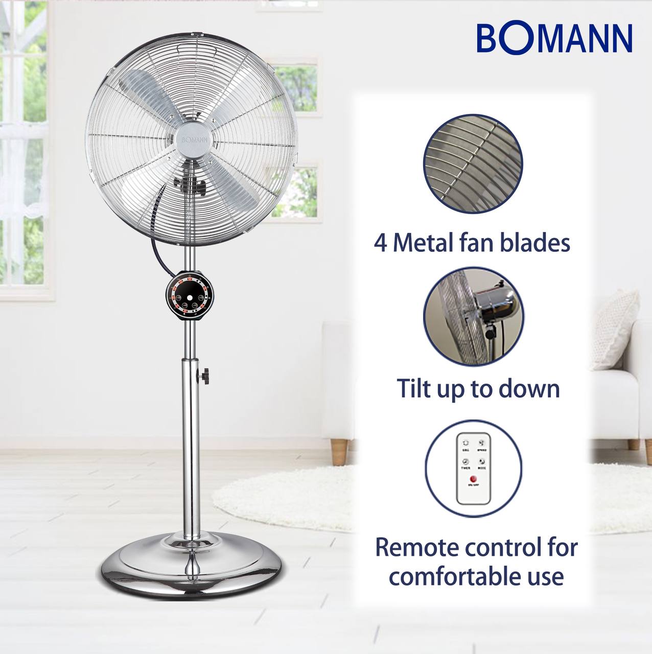 Bomann fan is equipped with a base body and a full steel blade. This stand can be adjusted to a height of 140 cm.